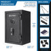 - Enhanced Features: Equipped with an internal LED light, motion sensor alarm, and low battery warning. The safe also has an external 9V battery backup access, ensuring consistent and reliable operation.
