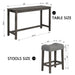 4 Piece Bar Table Set With Power Outlet, Bar Table Set With Chairs, Sofa Bar Table With Stools, Behind Couch Table With 3 Padded Stools, For Living Room, Dining Room - Dark Gray