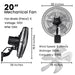 90 Degree 5 Speed Settings Wall Mount Fan Horizontal Oscillation Indoor / Outdoor Household Commercial - Black