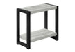 - Design and Finish: This 2-tier accent table features a thick, rectangular tabletop and a fixed lower shelf in a wood-look finish. The wood-grain texture adds a natural and contemporary appeal to the design.