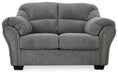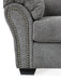 Why sacrifice comfort for style (or style for comfort) when you can have the best of both in this loveseat in pewter gray. Elements include a chic divided-back design and pillow top wrapped armrests that make nodding off all too easy. Calling attention to the elegantly flared armrests—black nickel-tone nailhead trim for a punch of cool character.