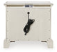 | Details | Made with hardwood solids, spruce veneer, MDF substrates and cast resin components, Antiqued white painted finish, 3 drawers with fully finished interiors, French and English dovetail construction and ball-bearing side glides, Metal bar pulls with aged pewter-tone finish, 110V power supply with dual USB charging ports, Power cord included; UL Listed | |