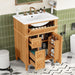 - Elegant Ceramic Sink & Vanity Design: Showcasing a smooth ceramic sink seamlessly matched with a classic vanity base, this piece adds both style and everyday functionality to any bathroom or powder room.