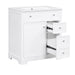 - Vanity with Cabinet & Drawers: Considering the humid environment in bathroom, this bathroom vanity has ample enclosed storage spaces: one cabinet with door and two drawers with slide rails. You can put soaps, towels, shampoos, tissue paper and other