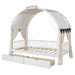 Twin Size Bed With Arched Roof And 2 Drawers - White