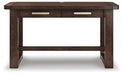 | Details | Made with hardwood solids, oak veneer and MDF substrates, Dark brown wood-tone finish, 2 smooth-gliding drawers, Cutout for cord management, Assembly required | |
