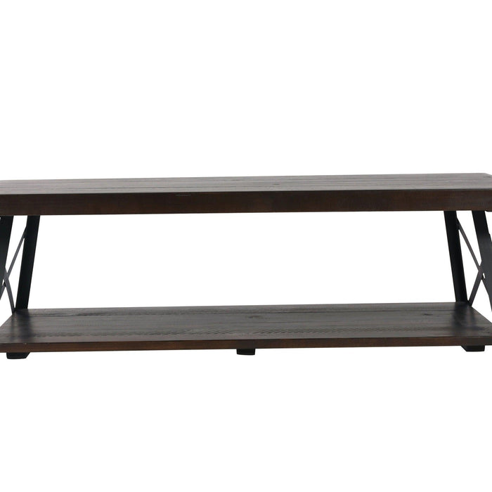 The wood and steel of the Chandler collection pair brilliantly with any style family or living room, instantly creating the look and feel of history in your space. The planked top highlights the wood’s natural knots and grain and will only look better with age. Solid steel angled legs and cross-bracing with metal rivet detailing add a dash of architectural interest to the modern rustic Chandler.