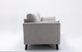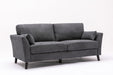- The Damian sofa is a classic. It's simple design is guaranteed to stand the test of time. The smooth surface of the cushions amplify the sense of order and cleanliness of any room. The 2 accent pillows included are designed to keep guests comfortable according to their own needs. With dark brown solid wood legs as support, the Damian Collection is sure to fit the color palette of most rooms. Relaxing on comforting fabric has never been so easy.