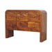 • Darcy 3 over 3 Drawer Chest in Chestnut Finish - Exuding timeless elegance with a contemporary touch, this handcrafted 100% Solid Mango Wood chest of drawers showcases a stunning curved silhouette in a rich chestnut finish. Designed for both style and function, it features 3 over 3 drawers adorned with brass knobs, offering ample storage for organizing essentials while adding a sophisticated charm to your space. The smooth, rounded edges enhance its seamless appeal, making it a perfect addition to bedrooms, hallways, or living areas. Built for durability and sustainability, this artisanal piece blends practicality with refined craftsmanship, elevating any interior with its warm, natural beauty.
