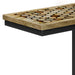 • Features top with solid wood and resin inlay in a geometric pattern and black metal frame and legs