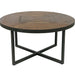 The Denton occasional collection is a study in simplicity. A straightforward cross of welded metal tubing finished in a steel gray tone and paired with a rustic pine-look planked top. The round cocktail table pairs well with today's sectional sofas and the petite round end table is the perfect accent piece.