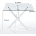 Dining Table With Cross Metal Leg And Tempered Glass, Modern Space Saving Kitchen Table For Living Room Legs, Square Table