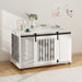 - Stylish 2-in-1 Design: Combines a modern dog crate with a decorative end table, featuring a white wood finish and black metal bars for a cohesive farmhouse aesthetic.