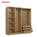 Generous Storage Capacity: With 6 spacious compartments, this wardrobe provides ample space for storing clothing, shoes, blankets, and more, helping you keep your home organized and clutter-free. Equipped with 3 easy-access drawers, this wardrobe allows you to store smaller items like accessories, socks, or underwear, keeping everything neatly organized and within reach.