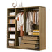 Doorless Storage Wardrobe For Dedroom With Shelves And 3 Drawers - Nature