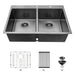 Double Bowl Drop In Kitchen Sink 33" X 22" With 16 Gauge Stainless Steel And 2 10" Deep Basins - Gunmetal Black