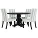 • High backs and dark wood legs deliver a refined aesthetic suitable for modern or traditional dining spaces