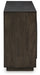 | Details | Made with solid wood and veneer, Inset wood base, Two-tone finish (dark grayish brown with light wire brush effect, lighter finish on interior), Inset wood base, Door fronts with arched glass panels, Dark pewter-tone door pulls, 4 doors, 2 shelves, Openings in back for electronics | |
