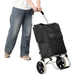 Foldable Shopping Trolley With Wheels And Removable Waterproof Bag - Black