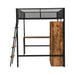 Full Size Loft Bed With Built In Desk, Wardrobe, And Shelves - Black