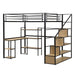 Full Size Loft Bed With Staircase, Built In Desk And Shelves And Sleeping Surface - Black
