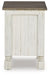 What a fresh interpretation of country classic style. Inspired by American farmhouse craftsmanship, but with an elevated sensibility, this chairside end table blends distinctive details such as turned post accents and raised door fronts for a substantial look that feels right at home. Those who appreciate rustic character should take note of the table’s thick crown moulding, beautified with a vintage two-tone finish. A small flip lid located on the top conceals a power outlet and USB ports to keep electronics charged up and close at hand