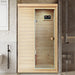 Red Cedar Mini 1 Person Far Infrared Glass Door On The Left Of The Indoor Sauna Room - Natural Wood / Caramel