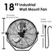 Industrial Wall Mount Fan 3 Speed Indoor / Outdoor Commercial Ventilation Metal High Velocity Fan - Black