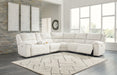 Details Includes left-arm facing power reclining loveseat with console, wedge and right-arm facing power reclining loveseat, “Left-arm” and “right-arm” describe the position of the arm when you face the piece, One-touch power control with adjustable positions and zero-draw USB port, Zero-draw technology only consumes power when the USB receptacle is in use, Corner-blocked frame with metal reinforced seat, Attached cushions, High-quality foam cushions wrapped in poly fiber, Polyester upholstery, Power cord included; UL Listed