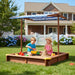 - Durable Construction: This wood sandbox features a sturdy square border, providing a robust outdoor play area for children to enjoy sand play activities. The solid wood construction ensures long-lasting durability, making it an excellent addition to any backyard.