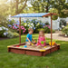 Kids Sandbox With Cover, Sand Box With Adjustable Canopy, Large Outdoor Cedar Sandpit For Backyard Play - Reddish Brown