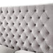 Create your sophisticated, luxurious master retreat with the Lacey bedroom collection. Luscious velvet-like fabric in silver gray is detailed with chrome trim and deep button tufts creating elegant softness. Transform your home with the stylish details and timeless beauty of Lacey!