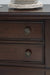 Details Made with hardwood solids, cherry veneer, cast resin components and engineered wood substrates, Cherry brown finish, Round knobs in a dark bronze-tone finish, 4 smooth-gliding drawers with felt lining, fully finished interiors, dovetail construction and heavy-duty ball-bearing side glides, Open lower shelf, Assembly required