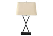 - Transitional Design: This 25-inch table lamp boasts a sleek black metal x-frame that adds flair and style to any living room, bedroom, or office space. It is topped with a chic beige linen rectangular shade, offering a modern yet classic look.