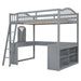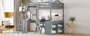 Full Loft Bed With U Shaped Desk, Storage Compartments And Tri Fold Mirror - Gray