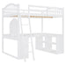 Full Loft Bed With U Shaped Desk, Storage Compartments And Tri Fold Mirror - White