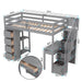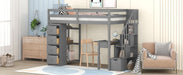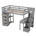 Twin Size Loft Bed With Storage Drawers, Desk And Stairs With Shelves - Gray