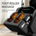 - Foot relaxation: Retractable footrest with rollers and heating for acupressure and muscle relief.