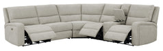 The Medford sectional has it all—two power-recline seats, a storage console with cup holders, seating for the whole family, and a full-size Cool Jewel gel memory foam sleeper for overnight guests. The neutral palette and contemporary design elevate the style of your home and make this the perfect place to entertain or just lie back and relax.