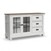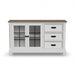 - One large double cabinet with an adjustable shelf and three storage drawers
