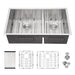 Double Bowl 33" Undermount Kitchen Sink 60 / 40 Design Stainless Steel 16 Gauge With Deep Basins - Black