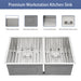 Double Bowl Undermount Kitchen Sink 33" X 19" With 16 Gauge And Deep Basins - Brushed Nickel