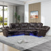 Modern Faux Leather Manual Reclining With Center Console And LED Light Strip, Living Room Furniture Set, Symmetrical Couch With 2 Cup Holders And Storage For Living Room - Brown