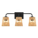 Moonlit - 3 Lights Wall Sconce With Shade, Bathroom Lighting Fixtures Over Mirror - Black / Rattan