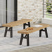 Outdoor Bench With Slat Panel Design And Frame (Set of 2) - Natural / Gray