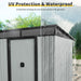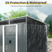 - Durable Construction: Crafted from galvanized steel, this shed is designed to be corrosion-resistant, UV-resistant, and moisture-proof, ensuring it withstands all weather conditions and provides year-round usability.