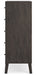 | Details | Made with engineered wood (MDF/particleboard/plywood) and decorative laminate for the right balance of affordability and durability, Two-toned with dark charcoal finish over replicated oak grain and a replicated sugarberry wood grain, 5 smooth-gliding drawers with vinyl-wrapped sides and back, Matte black knobs, Splay legs, Safety is a top priority, clothing storage units are designed to meet the most current standard for stability, ASTM F 2057 (ASTM International), Drawers extend out to accommodate maximum access while maintaining safety, Assembly required | |