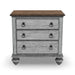 Vintage cottage style meets modern convenience with the Plymouth nightstand. Outfitted with three roomy drawers on premium ball-bearing glides to store all your bedside essentials, this nightstand also features integrated power to keep unsightly cords concealed and USB ports to charge your devices. A distressed graywash finish is contrasted with antique gunmetal pulls, while paneled accents and turned bun feet add to the unique vintage charm.