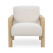 Elevate your decor with a modern accent arm chair featuring a durable rubber wood frame and sumptuous plush wool blend fabric seat. Rounded arms and clean lines deliver a cozy, durable lounging experience in living rooms and bedrooms. Perfect for Scandinavian, rustic, contemporary interiors, this top grain leather and wool blend accent arm chair adds effortless everyday durable style and lasting luxurious comfort.