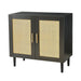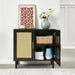 Side Panel Buffet Cabinet With Natural Rattan Door, Rattan Storage Cabinet With Adjustable Shelves, Side Panel And Buffet With Storage Space, Modern Console Cabinet In Bedroom And Living Room - Black / Beige